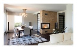 Данная облицовка имеет пристенное расположение. Камин монтируется вплотную к стене и при этом, чаще всего, располагается посередине, симметрично зонируя пространство комнаты. Такое расположение дает возможность равномерно обогревать помещение. Опорные ножки печи имеют почти круглую форму, а их цвет меняется в зависимости от расцветки самой печи. Задняя стенка прикрыта листом черной стали и не имеет бортика сзади, только по бокам и спереди. Слева и справа есть по две изразцовые плитки с отверстиями для конвекции воздуха. Еще по паре есть сверху, прямо над топкой. Когда в печи горят дрова воздух затягивается снизу, разогревается и выходит обратно в комнату через эти отверстия. Слева и справа от топки есть по три плитки с тематическим рисунком росписи.