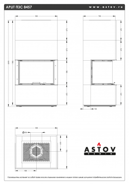 Каминная топка АСТОВ П3С 53(84)57 - ТОПКА ПОДОВАЯ 3 СТЕКЛА (П-образная) И ПОДЪЕМНЫМ МЕХАНИЗМОМ ДВЕРЦЫ