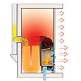 - Ребра жесткости по всему корпусу топки и встроенные в дымосборник тепловые каналы позволяют снимать больше тепла и отдавать его в помещение путем конвекции