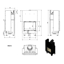 Каминная топка HOXTER HAKA 63/51 может быть с тепловоздушным режимом, с аккумулирующим режимом с массой возле топки, с аккумулирующим режимом с массой на каминной вставке. Эту топку можно использовать для создания теплоемких облицовок и для отопления дома с применением воздушной разводки по комнатам. Особая конструкция дымосборника позволяет больше снимать тепла с дымовых газов, о чем свидетельствует низкая температура продуктов сгорания 261 градусов при стандартной закладке дров 3,8 кг. Также для уменьшения теплового излучения через стекло можно опционально заказать двойное стекло. Стандартно дверь может открываться на петлях расположенных либо справа, либо слева.