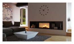 - Декоративное термостойкое стекло, выдерживающее температуру до 660°C, придающее камину современный и элегантный вид, оптически увеличивает переднюю часть топки.
