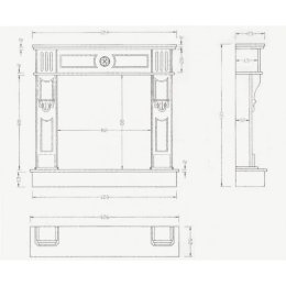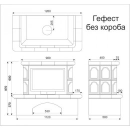 Трехсторонняя каминная топка. Ширина дверной рамки 84 см. Ширина бокового стекла 34 см. Высота двери 57 см. Вся дверца топки открывается вверх, а также вбок для чистки стекла. Поворотный чугунный дымосборник облегчает подключение к дымоходу. Топочная камера футерована шамотом бежевого цвета под кирпичную кладку. Можно заказать топку с черным шамотом.