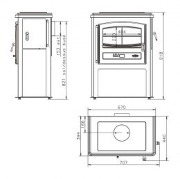 Дверца со стеклокерамикой, выдерживающей температуру до 800оС.