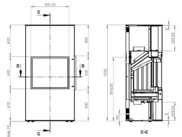 В печь встроен регулятор поступления воздуха, в том числе вторичного и системой дожига вторичного газа. Данная печь имеет верхнее подключение дымохода. Пластина в печи изготовлена из отшлифованного чугуна.